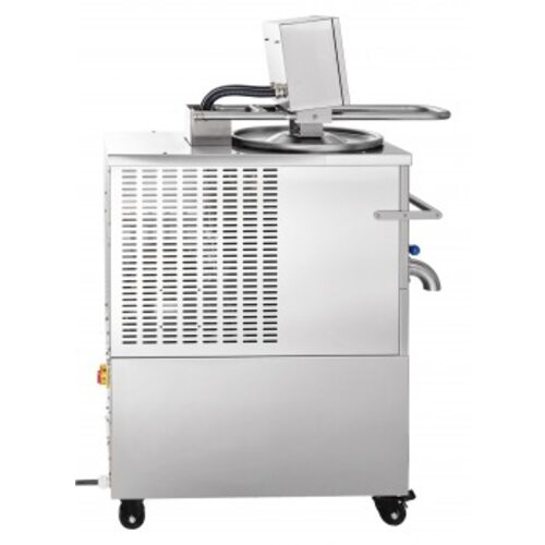Сенсорная панель управления (TFT экран) ферментатора позволяет контролировать и настраивать конфигурацию (программировать) циклов смешивания, ферментации и консервации. А для облегчения перемещения и установки на рабочее место ферментатор оснащен 4-мя колесами, два из которых оборудованы стопорами.Ферментатор ФТ-40 полностью выполнен из высококачественной аустенитной нержавеющей стали AISI 304. Герметичная крышка препятствует доступу кислорода, позволяя поддерживать анаэробные условия. Ферментатор не требует особого ухода, благодаря наличию двух сливных отверстий - верхнее отверстие для слива полезного объема закваски и нижнее отверстие для полного опустошения резервуара - облегчается не только слив готовой закваски, но и мойка резервуара.
