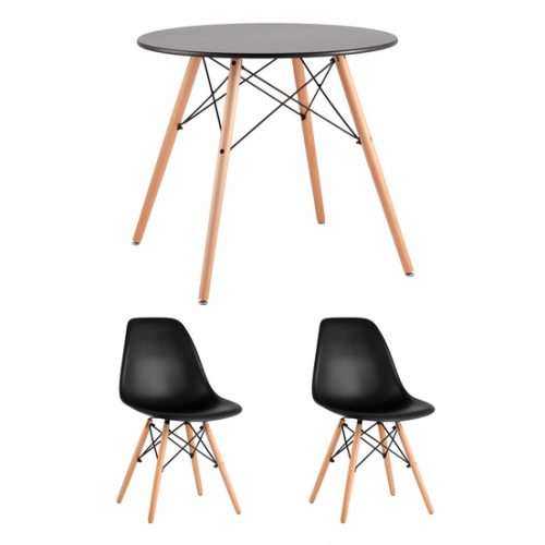 Обеденная группа Стол Eames D80 черный, 2 стула Eames DAW черный
