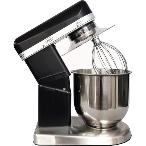 Настольный планетарный миксер VIATTO VA-SMB7BL предназначен для взбивания и замешивания различных кондитерских масс: суфле, муссов, кремов (белкового, заварного, масляного и т. д.), пюре, соусов, теста (бисквитного, дрожжевого, блинного и заварного). Имеет плавную (бесступенчатую) регулировку скорости, что позволяет выбирать оптимальный режим работы для приготовления различных продуктов.Оснащён съёмной дежой из нержавеющей стали и подъёмной траверсой. Корпус изготовлен из окрашенного металла чёрного цвета, защитная крышка – из пластика.Рекомендуется к применению в небольших кафе и ресторанах, частных кондитерских, мини-пекарнях и на других предприятиях общественного питания малого формата.Максимальная загрузка:При замешивании теста: до 750 г муки или до 1.13 кг тестаПри взбивании яиц: до 22 штВ комплект поставки входят 3 насадки (венчик, крюк и лопатка).
