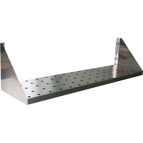 Полка перфорированнаяТехно-ТТПН-611/1804предназначена для хранения посуды, различного инвентаря и сухих продуктов на предприятиях общественного питания и торговли. Изделие крепится к стене при помощи 2 боковых кронштейнов, которые могут располагаться как сверху, так и снизу полки.ОсобенностиБолтовое соединение