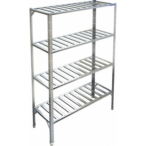 Стеллаж кухонныйТехно-ТТ СТР-234/804предназначен для хранения посуды, различного инвентаря и сухих продуктов на предприятиях общественного питания и торговли.Конструктивные особенностиМодель оснащена регулируемыми по высоте полками и ножками, что позволяет компенсировать неровности пола.