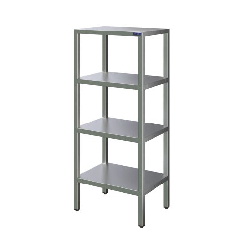 ТЕХНИЧЕСКОЕ ОПИСАНИЕСтеллаж состоит их четырех полок и четырех стоек. Стойки стеллажа изготавливаются из нержавеющей стали AISI 430 с квадратным сечением 40х40 мм . Полки выполнены из пищевой нержавеющей стали AISI430. Ножки имеют пластиковую опорную часть и регулируются по высоте. Изделия сварные.