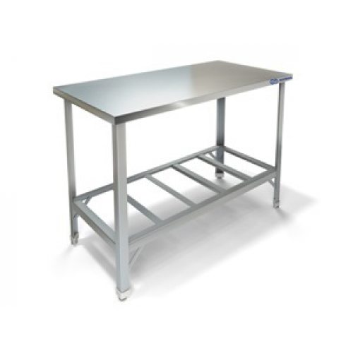 Столы производственные имеют широкую область применения: в пищеблоках, продовольственных магазинах, в цехах, связанных с переработкой пищевого сырья и т. д. Стол производственный имеет сборно-разборную конструкцию. Он состоит из столешницы и каркаса, изготовленного из нержавеющего уголка. Столы без борта устанавливаются в центре кухонного помещения и предназначены для четырёхстороннего доступа к рабочей поверхности. Столы укомплектованы решётчатой полкой. Ножки стола снабжены регуляторами высоты, что позволяет устранять неровности пола. В конструкции стола использованы элементы для придания устойчивости и предотвращения раскачивания во время эксплуатации. Универсальная конструкция позволяет легко производить сборку стола.