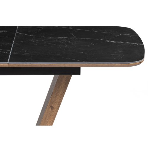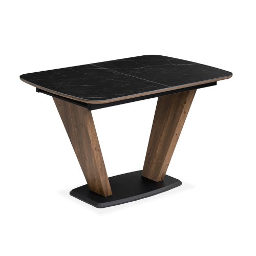 Стол на тумбе Петир 120(160)х80х75 черный мрамор / орех / черный