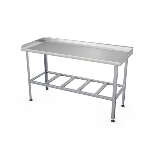 - Наличие борта с трех сторон позволяет работать с мукой, изделиями из теста, а также для выполнять обвалку мясных и рыбных блюд, исключая попадание остатков обрабатываемой продукции на пол, что значительно упрощает уборку помещения