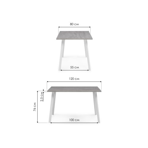 Стол Тринити Лофт 120х80х75 25 мм бетон / белый матовый