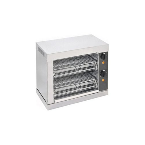 Тостер Mec TB33 - используется для приготовления тостов, горячих бутербродов и разогрева пиццы, пирожков и пр. Тостер состоит из корпуса нержавеющей стали и рабочей камеры. Нагрев осуществляется с помощью верхних и нижних ТЭНов. Панель управления оснащена таймером и светосигнальной лампочкой. В комплект поставки входит решетка с ручкой.Особенности:- 2 решетки,- 2 ручки,- таймер,- корпус нерж.,- 440х240х380мм,- 3кВт, 230В