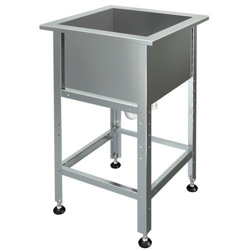 Ножки с регулируемыми опорами — оцинкованная/ нерж. сталь, выполнены из уголка 40х40мм. t=1,0 мм с подгибом краёв во внутрь. Каркас оцинкованная/ нерж. сталь t=1,0 мм. Ванна из нерж. сталь AISI 304 t=0,6 мм (емкости длиной 1,35 и 1,55 из нерж. сталь AISI 304 t=0,8мм). В комплект входит гофросифон. Мойки без отверстия под смеситель.