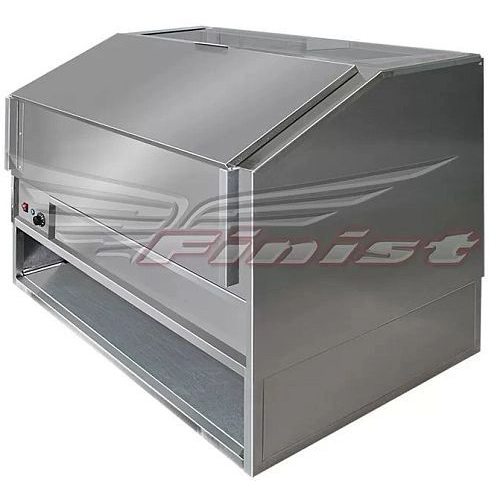 Витрина полностью выполнена из качественной нержавеющей стали. Стеклянные верхняя и передняя панели, а также яркая внутренняя подсветка превосходно презентуют лакомое блюдо. Есть возможность комплектации витрины внутренними полками и вертикальными разделителями, что позволяет демонстрировать покупателям попкорн разного вида. Модель легко встраивается в прилавок или может использоваться, как самостоятельная единица. Оснащена регулируемым термостатом и системой подогрева готовой продукции горячим воздухом.