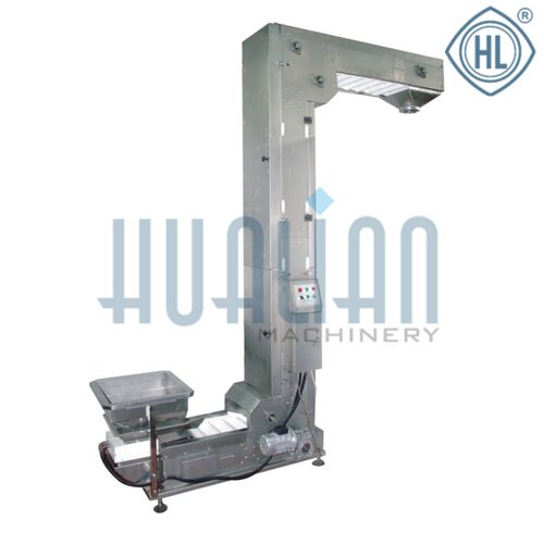 Предназначен для автоматической подачи продукта на дозирующую станцию, продукция транспортируется пластиковыми ковшами, объем ковша 1.8 л. Оборудование поставляется в комплекте с вибропитателем. Автоматическое поддержание заданного уровня продукта в бункере дозатора. Как только бункер заполняется - подача автоматически прекращается. Ковшовая подача минимизирует потерю продукта при загрузке. Z-образная структура позволяет значительно сэкономить рабочее пространство по сравнению с линейными транспортерами. Поставляется в двух комплектациях: крашеный металл и полностью нержавеющая сталь. Технические характеристики Z-образный загрузочный транспортер